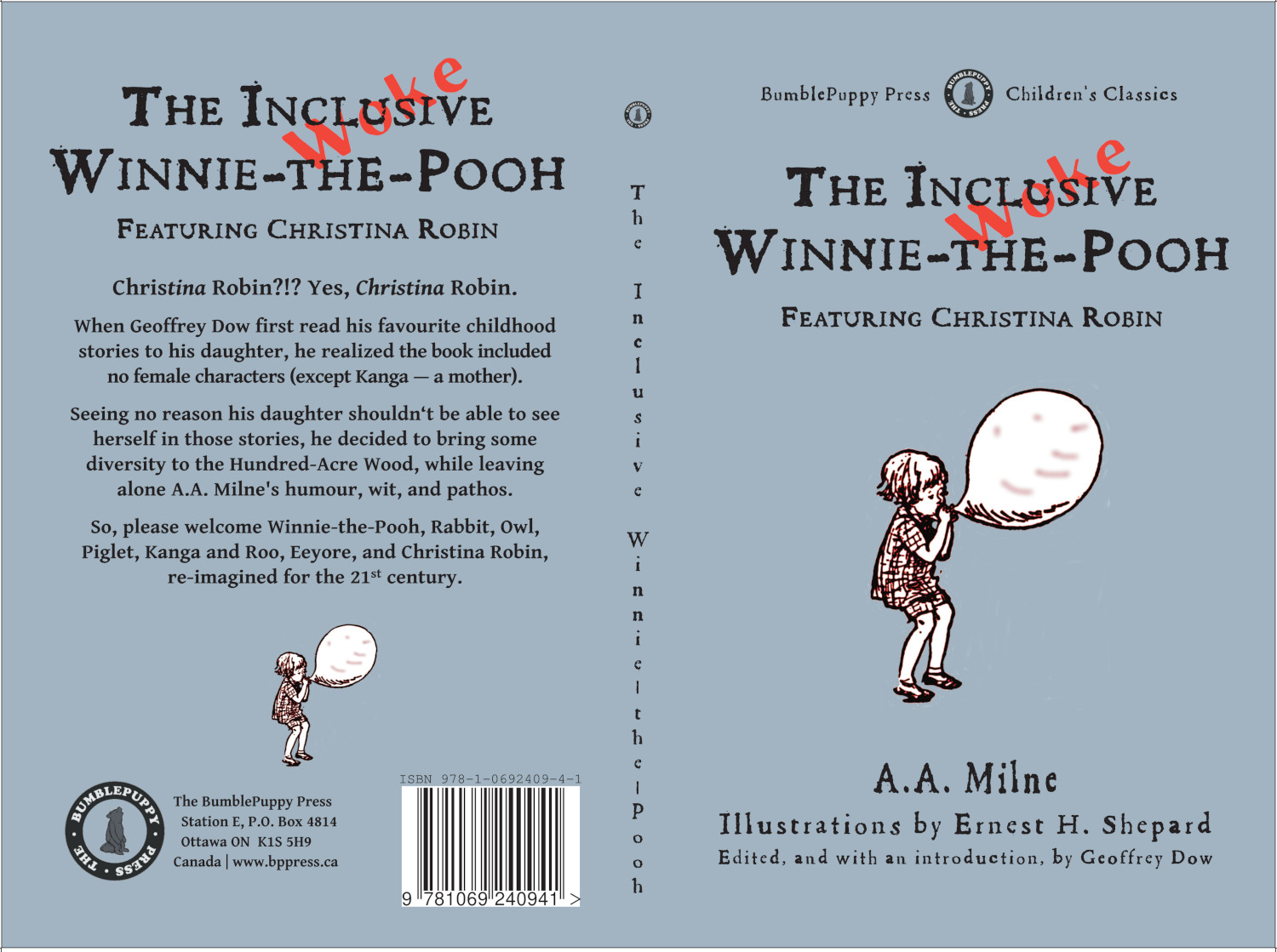 The proprietor behind the BumblePuppy Press, Geoffrey Dow is the editor of The Inclusive Winnie-the-Pooh. He lives in Ottawa, where he is also the full-time dad to his daughter, Baobao.